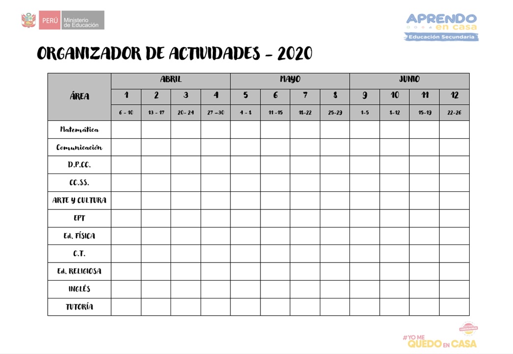 Los deberes son una parte fundamental en el proceso educativo de todos, tanto de los niños, niñas, adolescentes y adultos. Pero muchas veces no contamos con un orden adecuado que nos permita poder cumplirlos, otros opinan que les gusta trabajar bajo presión, algunos deciden procrastinar (dejarlo para después) y un pequeño grupo, decide ni siquiera tomarse la molestia de hacerlos. Más aún en estos tiempos de aislamiento tenemos que procurar que el cumplir nuestras actividades no sea un generador de tensión o estreses y para ello es necesario tener un horario que nos ayude a organizar mejor nuestras tareas, tanto académicas como familiares.